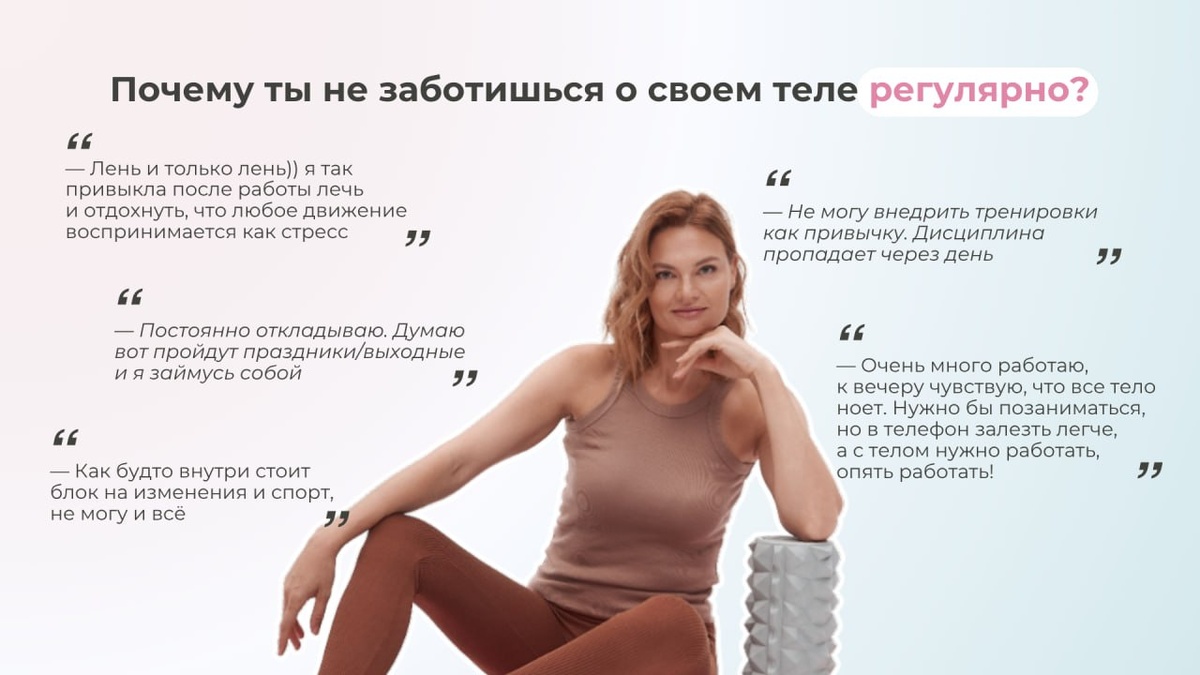 ? Нет ни одной женщины ни в команде КОД, ни в потоке «Я Здорова», ни внутри КОД • Тело, кто бы ни разу не сталкивался с чувством: У меня нет ни сил, ни времени. Я просто не могу еще и тренировками заниматься. Или это лень? Неважно Но внутри КОД мы знаем: лени не существует. Есть состояние нервной системы, которая просто пытается вас спасти, поэтому это не просто громкие слова 😉 Когда мозг блокирует попытку начать заниматься телом, тазовым дном — да собой в целом, за этим всегда стоят конкретные нейробиологические причины: 1️⃣ Режим энергосбережения Зачем тратить дефицитный ресурс на приседания, если нужно просто дожить до вечера? 🧘♀️Что делать: Снизить планку. 5 минут дыхательных практик, 5 минут разминки с Лилией в КОД, и это уже победа! 2️⃣ Страх перед «идеалом» Ваш мозг боится той картинки «идеального тела», которую он рисует. Если тренировка — это обязательно пот, боль и часы времени, мозг лучше выберет прокрастинацию 🤾♀️Что делать: Понять, что забота о теле — это про у