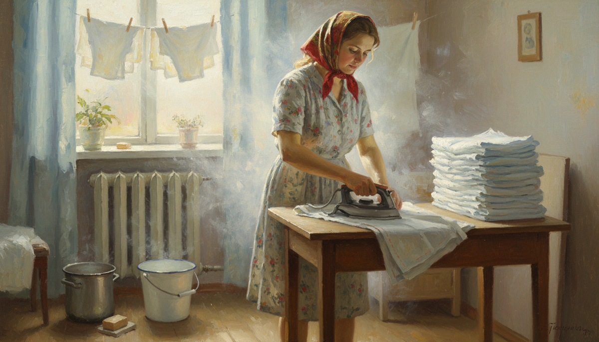 Она стирала их вручную. Кипятила в эмалированном ведре. Гладила с двух сторон — сначала с одной, потом с другой, и снова с первой. Потом вешала на батарею, и вся квартира превращалась в туман. Это называлось — уход за ребёнком. Никакого Huggies. Никаких влажных салфеток. Никакого подгузника за 50 рублей, который можно просто выбросить. Только пелёнки, только руки, только батарея как лучший друг молодой матери. И знаете что? Дети вырастали. Мне всегда было интересно: как вообще советские женщины это выдерживали физически? Ребёнок меняет постельное бельё примерно 10–12 раз в сутки в первые месяцы жизни. Умножьте на пелёнки, распашонки, клеёнки — и получите гору ткани, которую нужно стирать каждый день. Без стиральной машины. Ну, или с той, которая называлась «Малютка» и напоминала маленькую центрифугу с характером. Это был не уход за ребёнком. Это был труд. Советская пелёнка — отдельная история. Её шили из фланели или бязи, стирали хозяйственным мылом (никакого детского порошка в широком