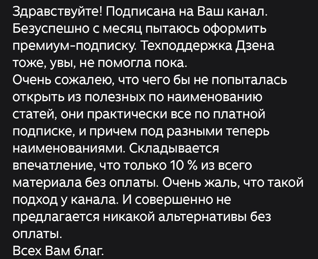 Самое непонятное в этой ситуации то, что человек, почему-то, пишет этот комментарий, после выхода на канале подряд нескольких статей с полезной и актуальной информацией, доступной в свободном доступе, без подписки.