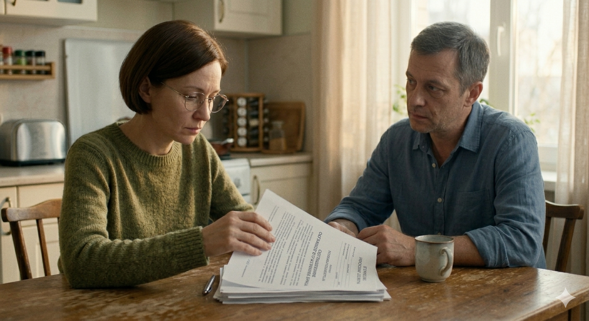 В субботу мы сидели за кухонным столом, разбирая документы. Двадцать лет жизни сведены к сухим пунктам: кому достаётся дом (ей), как делить дебетовые счёта (пополам), график опеки (50/50), расчёты алиментов.