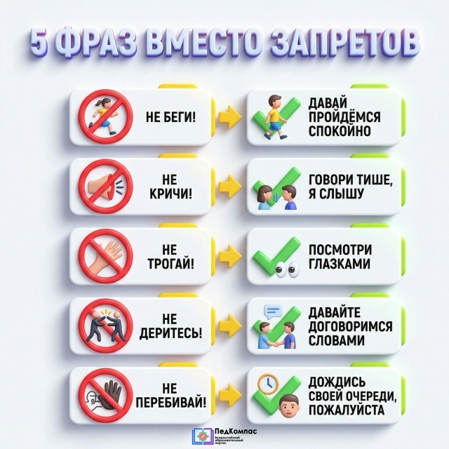 🚫 ➡ ✅ 1. Вместо «Не беги!» → «Идём спокойно»