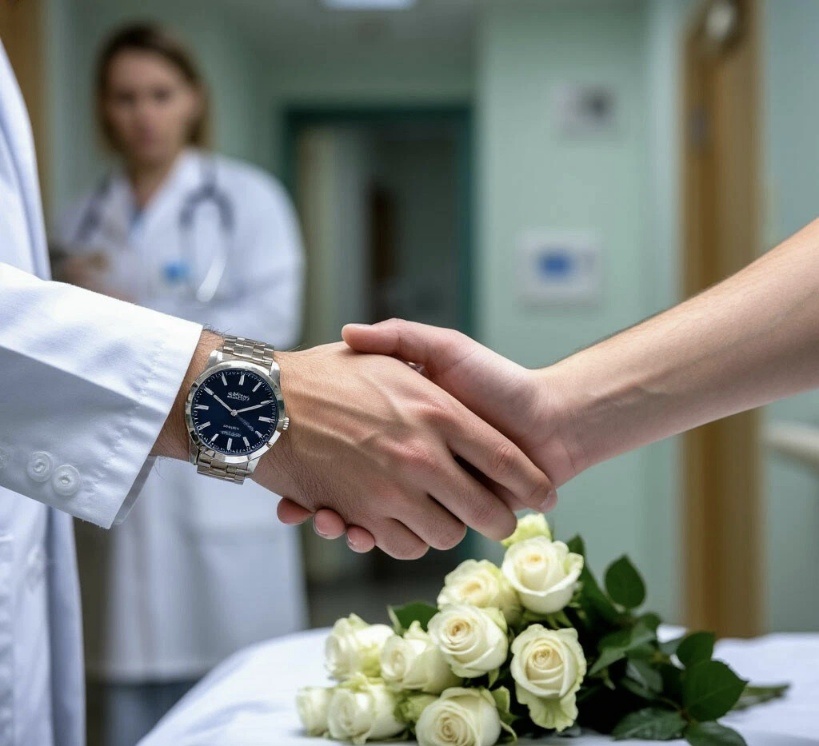 Катя осталась стоять с букетом посреди коридора, чувствуя на себе десятки любопытных взглядов пациентов и медперсонала.