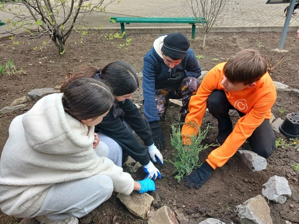 День Древонасаждения с волонтёрами «Добро+», юннатами и «Первыми» Багаевской школы