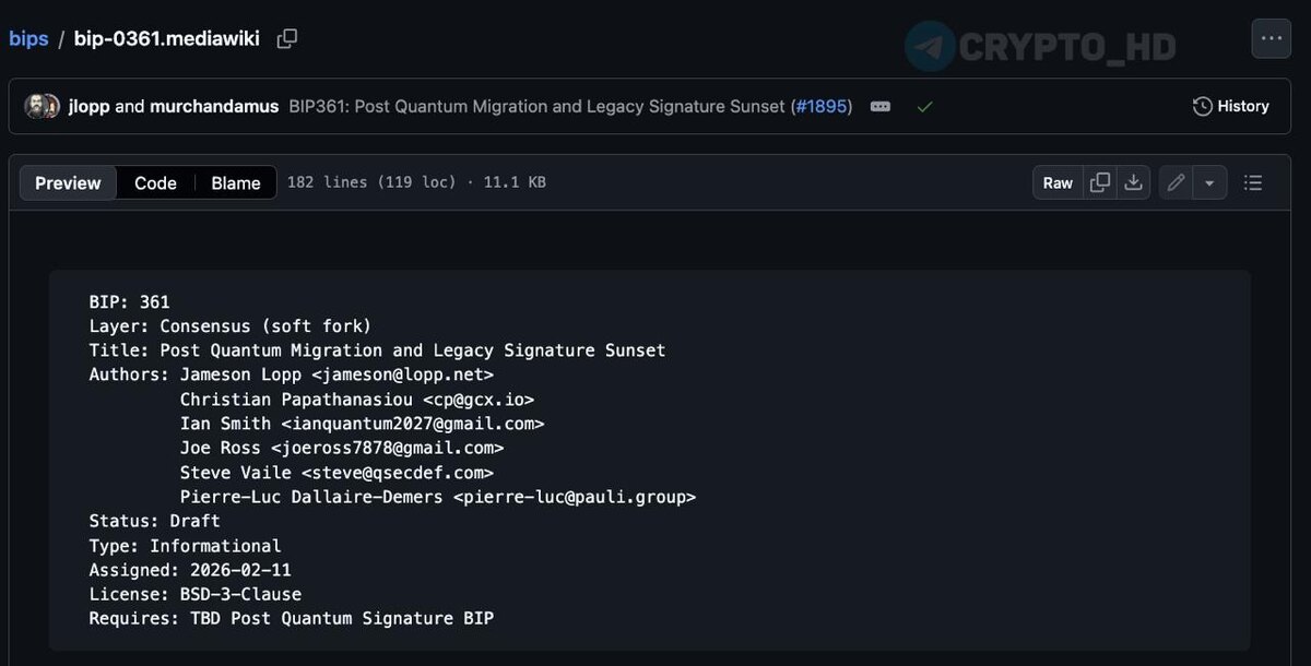 Джеймсон Лопп (основатель Casa) и еще пять исследователей в области квантовой безопасности опубликовали предложение (BIP-361) заморозить до ~1,7m BTC (включая кошельки Сатоши Накамото), уязвимых к будущим квантовым атакам. ➠ Через 3 года хотят запретить переводы BTC на старые адреса. ➠ Через 5 лет планируют сделать старые подписи недействительными, а монеты – фактически замороженными. ➠ Позже могут добавить механизм восстановления через zero-knowledge proofs. Авторы называют это «стимулом к обновлению»: потерянные монеты повышают ценность остальных, а взломанные – снижают. Ранее: - TRON - Grayscale - мнение CZ Crypto Headlines