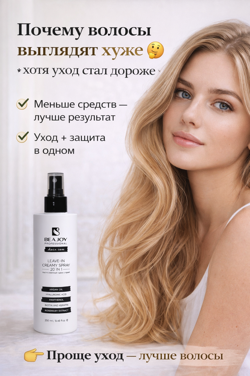 Например, формат крем-спрея 20 в 1 это про упрощение: нанёс, расчесал и не нужно использовать несколько разных средств.