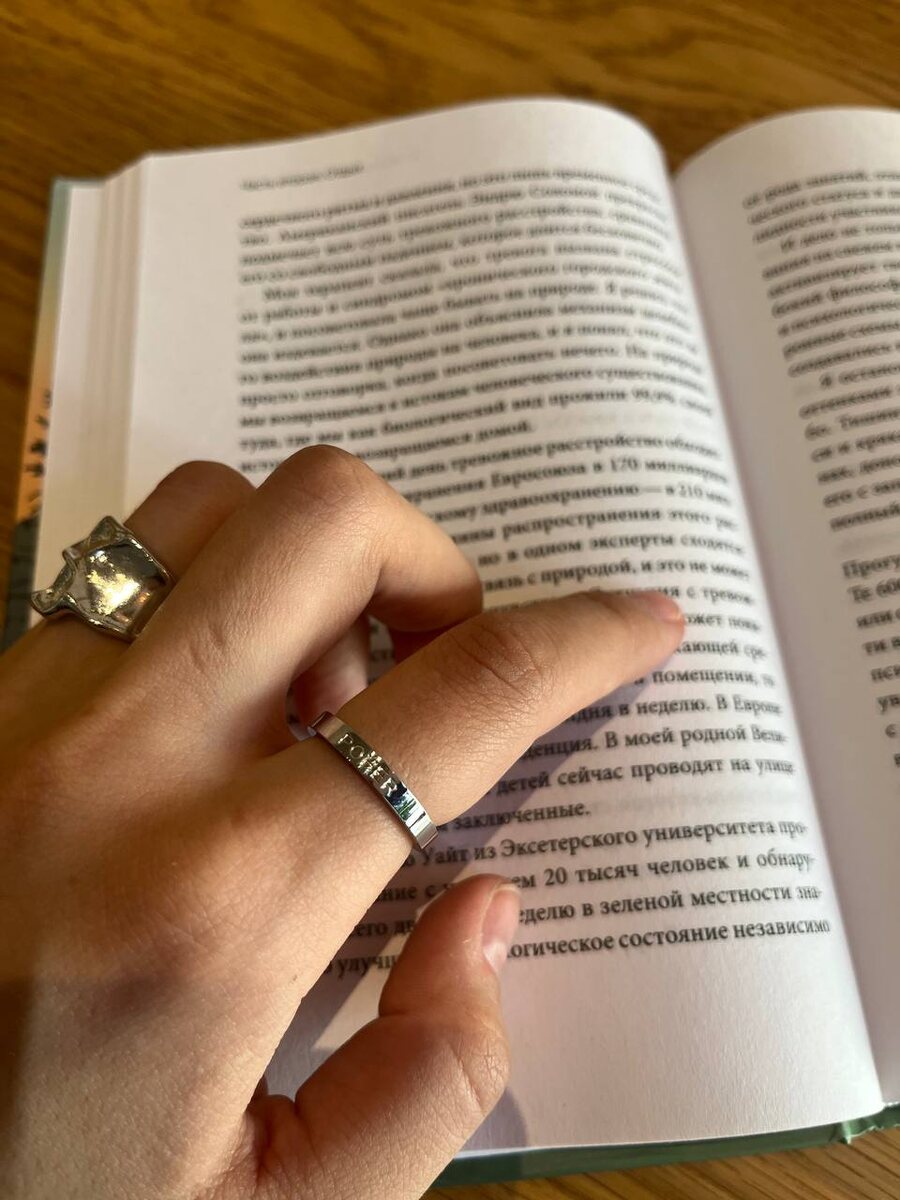 Кольцо «poher» и книга «Займись ничем». В ней описывается как отдых действует на мозг, какие отделы затрагивает. Очень много классных исследований приведено в пример. И главное, легко читается. Вот вам интересный факт из книги: «По данным Агентства по охране окружающей среды в Великобритании три четверти детей сейчас проводит на улице меньше времени, чем заключенные»