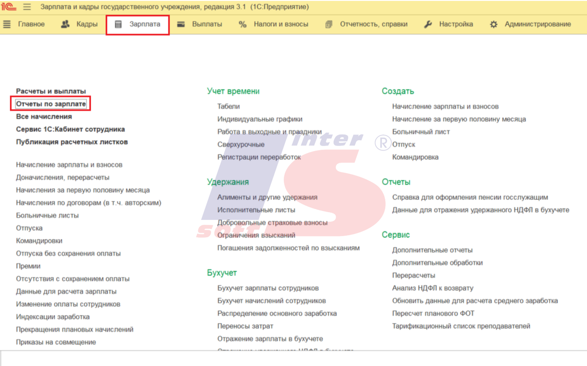 Сверка начислений и выплат между 1С:ЗКГУ и 1С:БГУ — одна из самых частых и трудоемких задач в учете бюджетных учреждений. Расхождения по статьям финансирования или документам-основаниям создают риски возникновения ошибок в отчетности и вопросов со стороны контролирующих органов. Мы в «Интерсофт» регулярно сталкиваемся с такими запросами: как сертифицированный Центр компетенции 1С:ЗУП, наши специалисты помогают бухгалтерам государственных и автономных учреждений настраивать точную и удобную аналитику. В этой инструкции делимся проверенным решением — пошагово покажем, как сформировать отчет для сверки начислений и выплат в разрезе источников финансирования и документов-оснований в связке 1С:ЗКГУ и 1С:БГУ. Для корректной сверки начислений и выплат в разрезе статей финансирования и статей затрат в 1С:БГУ бухгалтеру необходим детализированный отчет, сформированный на основе данных 1С:ЗКГУ. Базой для создания такого отчета служит типовой отчет «Полный свод начислений, удержаний и выплат» (ра