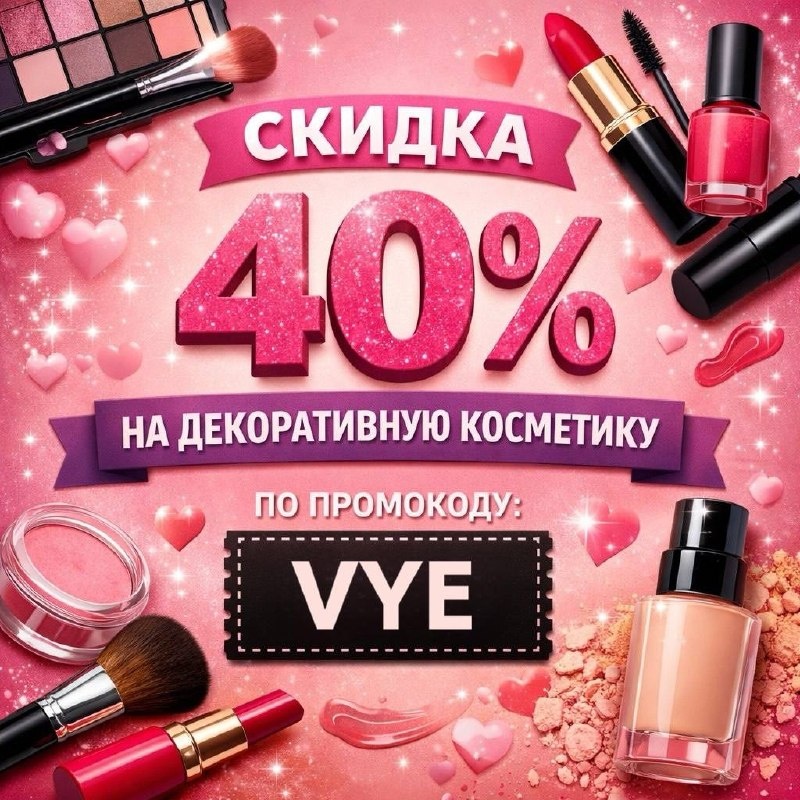 🧡 Дарим скидку 40% на ВСЮ декоративную косметику по промокоду VYE!