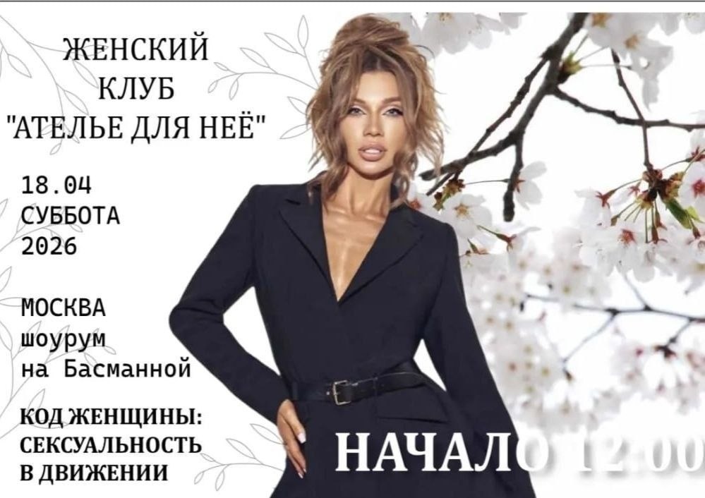 ⚡️ Мои дорогие, всем доброго дня ☀️ Для тех, кто будет в Москве 18 апреля, очень рекомендую посетить это мероприятие: Дорогие девушки, пришло время снять всё лишнее и надеть лучшее! 18 апреля приглашаем вас в пространство абсолютной женской силы🔥 Сообщество «Ателье для неё» с гордостью представляет своё дебютное мероприятие: 💃 «Код женщины: сексуальность в движении» 📍 Где: Шоурум на Басманной 📅 Когда: 18 апреля ⏰ 12:00 - 15:00 Это не очередная скучная конференция. Это настоящий праздник энергии, красоты и внутренней свободы💃✨ В ПРОГРАММЕ: 🔥 Вдохновляющие выступления ТОПовых спикеров, которые знают, как раскрыть твой потенциал 🎭 Зажигательное шоу от профессиональных артистов и танцоров 🔮 Мастер-класс «Нумерология отношений» — лично от звездного цифрового психолога Соны Меликян. Узнай тайны своей даты рождения! 💄💋Звездный визажист Юлия Васильцова с темой "Секси макияж" 📃Поэтесса Евгения Постолова с авторскими стихотворениями о женственности и вдохновении 📽️Премьерный