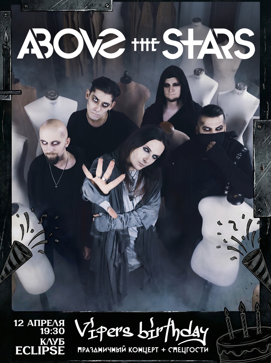В настоящее время за плечами Above the Stars пять альбомов, в работе над которыми были задействованы музыканты таких групп, как Lord of the Lost, Devilment, The 69 Eyes, Cradle of Filth, Second to Sun, Змей Горыныч, UDO/Everlost, Gyze, Mushroomhead, Гран-КуражЪ/Metheora, ARDA, Amalgama и других. (С) описание группы официального мероприятия «ВКонтакте».
