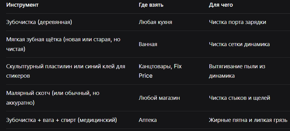 Вы замечали, что телефон стал хуже слышно в разговоре? Музыка в наушниках звучит тихо? А провод зарядки начал выпадать при малейшем движении? Поздравляю — у вас классическая проблема: динамики и порт зарядки забились пылью, ворсом из карманов джинсов и омертвевшей кожей. В сервисе за чистку возьмут от 1000 до 3000 рублей. А я покажу, как сделать это самому за 5 минут и 0 рублей. ❌ Что НЕЛЬЗЯ использовать: иголки, булавки, скрепки (повредите контакты), пылесос (статика и слишком сильный поток), воду под напором (убьёте динамик). Симптомы: Пошаговая инструкция: Результат: Зарядка снова работает как новая. Экономия: отказ от покупки нового кабеля и похода в сервис. Фото для статьи: Сделайте макросъёмку порта ДО (видна грязь на дне) и ПОСЛЕ (чистое дно и стенки). Симптомы: Результат: Мелкая пыль выметается из отверстий. Этот метод вытягивает пыль, которая забилась глубоко внутрь. Результат: На пластилине останутся чёрные точки — это пыль из динамика. Звук станет чище и громче на 30–50%.