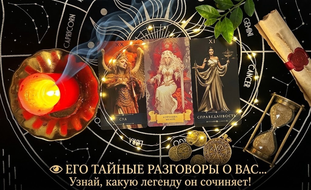 Мои хорошие, первая же пара карта дает очень четкий ответ. Ваш мужчина сейчас не болтает о вас со случайными собутыльниками в баре или с поверхностными знакомыми. Выпадают Справедливость и Туз Пентаклей. Это значит, что он обсуждает вас с людьми официальными, статусными или теми, с кем его связывают финансовые и документальные вопросы. Для кого-то из вас это прямое указание на то, что он говорит о вас с юристами, адвокатами или нотариусами (если вы делите имущество). Для других - это разговоры со старшими родственниками, теми, кто имеет над ним авторитет и с кем он обсуждает сугубо материальные, земные аспекты вашей связи (деньги, жилье, алименты, вложения). Его аудитория сейчас - это люди практичные.