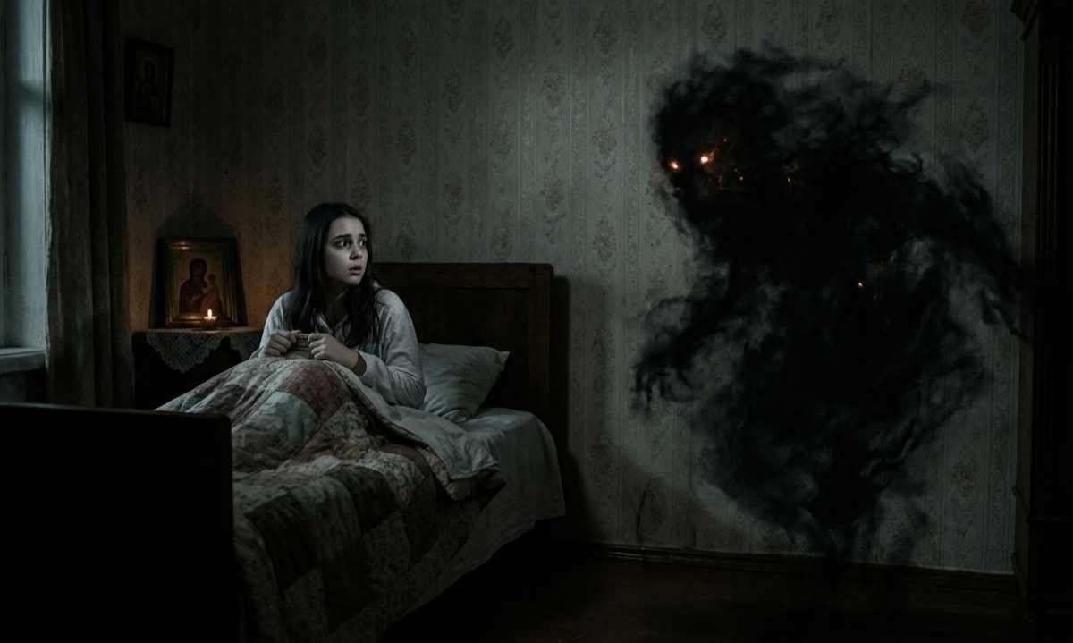 Тьма отделилась от стены и медленно двинулась к моей постели. Оцепенение сковало мышцы — я не могла даже пошевелить пальцем. Ледяные, бесформенные пальцы сомкнулись на моей шее. Хватка была такой сильной, что в глазах начали лопаться сосуды. В этот момент, на грани обморока, я из последних сил взмолилась о защите, вспоминая слова молитвы, которой когда-то учила бабушка. Сознание померкло.