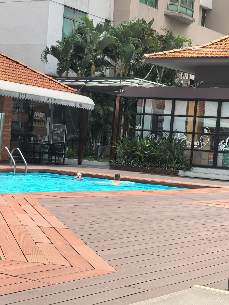 то ж отпуск, зачем себя мучать - впереди и так много движухи. Мы заказали такси (Приложение граб, очень много 7-ми местных машин и дешево) и поехали в отель, пить коктейли и смузи у бассейна, дети - еще раз купаться, а ближе к закату - играть в теннис, у отеля есть и корт. Аренда корта - бесплатно, аренда ракеток - как-то символически стоила.