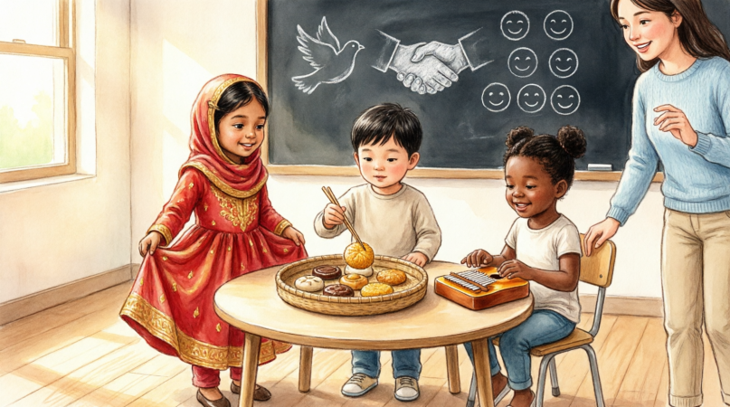 Техника «Культурный чемоданчик». Предложите детям собрать виртуальный чемодан: «Что я возьму из своей культуры в нашу общую жизнь?». Этот приём мягко повышает статус ребёнка-мигранта или представителя меньшинства, переводя его из позиции «чужого» в позицию «носителя ценности».