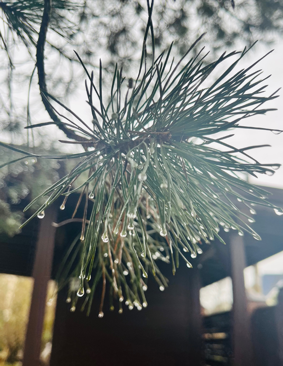 На каждой хвоинке висели капли дождя. Как бусинки!