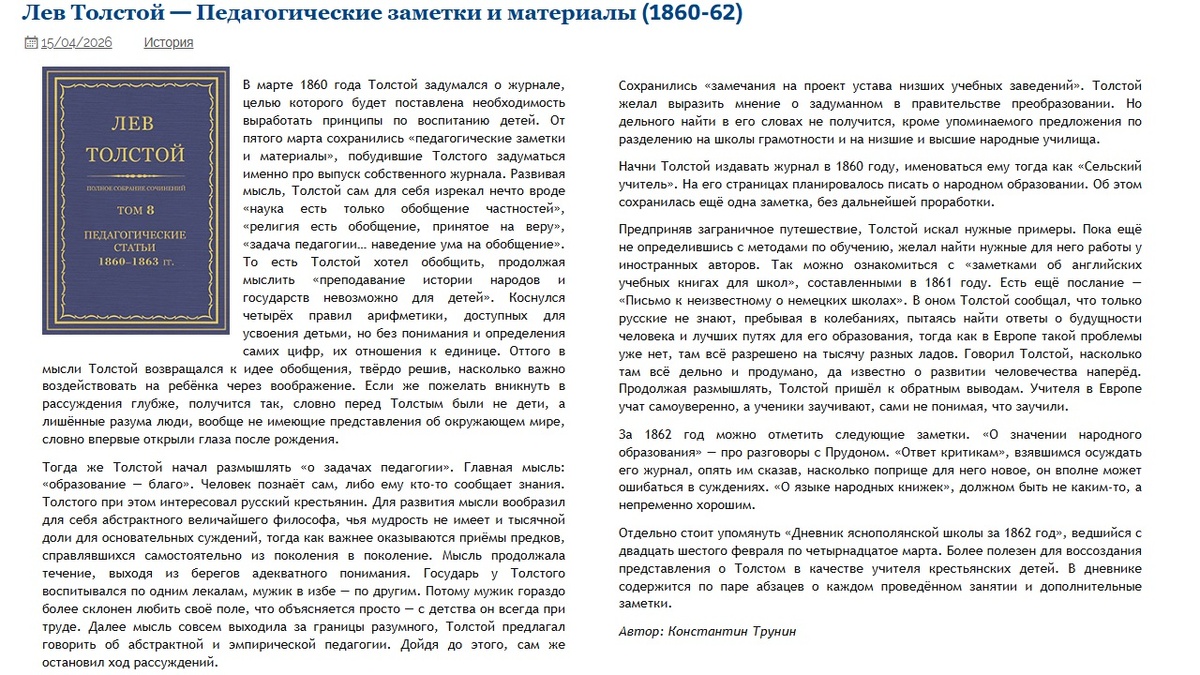 Лев Толстой — Педагогические заметки и материалы (1860-62) | Критика