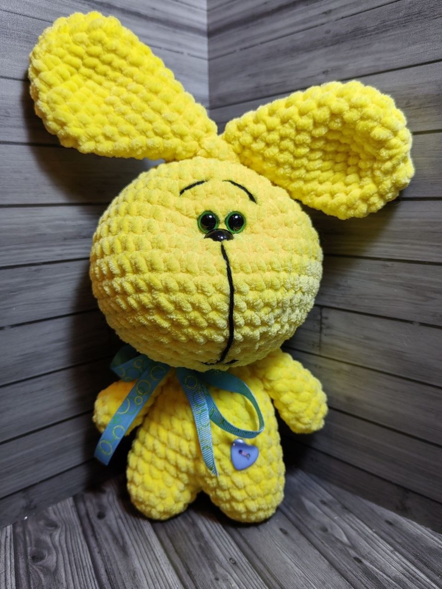 )))) Симпатяги из плюшевой пряжи 🧶 - оооочень мягкие и тактильные ) У всех свой характер, свой взгляд, а уровень милоты 📈 - зашкаливает 🥰🥰 Жёлтый - рост 27 см ( вместе с ушами) Цена 1 200р Синий мальчик заяц в кофте - рост 28 см Цена 1 200р Девочка в платье - рост 30 см Цена 1 200р Заяц с бабочкой - рост 38 см. Цена 1300р. Заяц в голубой кофточке - рост 28 см. Цена 1 200р. Любой из этих малышей готов поехать в новый дом)))