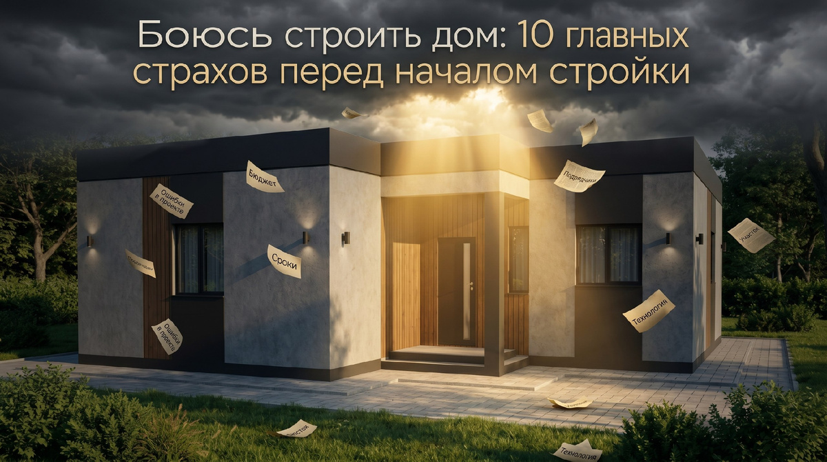 Чаще всего людей пугают бюджет, сроки, ошибки в проекте, выбор подрядчика, участок, технология строительства и риск не довести дом до конца.