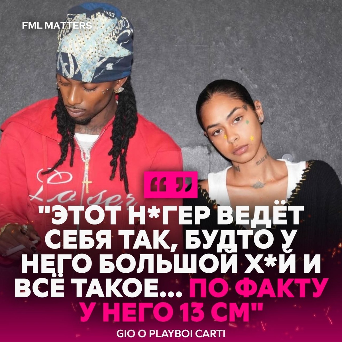 🍆 «У НЕГО 13 СМ», — GIO О PLAYBOI CARTI! На фоне жёсткой ссоры Gio продолжает выносить личное в публичное. Она заявила, что Карти ведёт себя так, будто у него большой член, но на деле, по её словам, всё далеко не так.. 💀 FML MATTERS