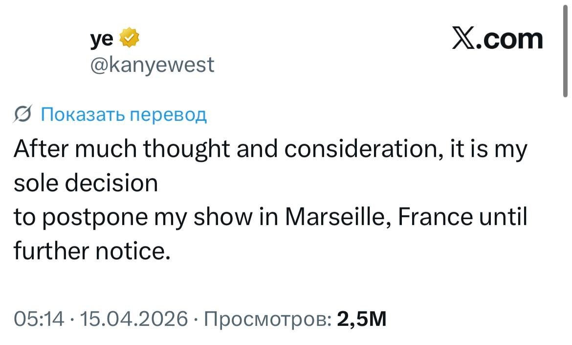 Канье отменил свой концерт в Марселе из-за угроз французского премьера запретить ему въезд в страну