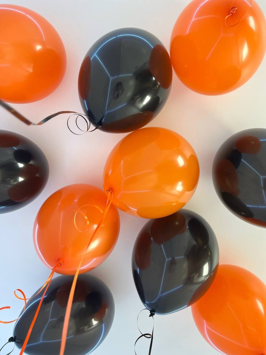 Заказать: https://planetasharov.ru/shop/shary-pod-potolok/oranzhevo-chernye-shary/