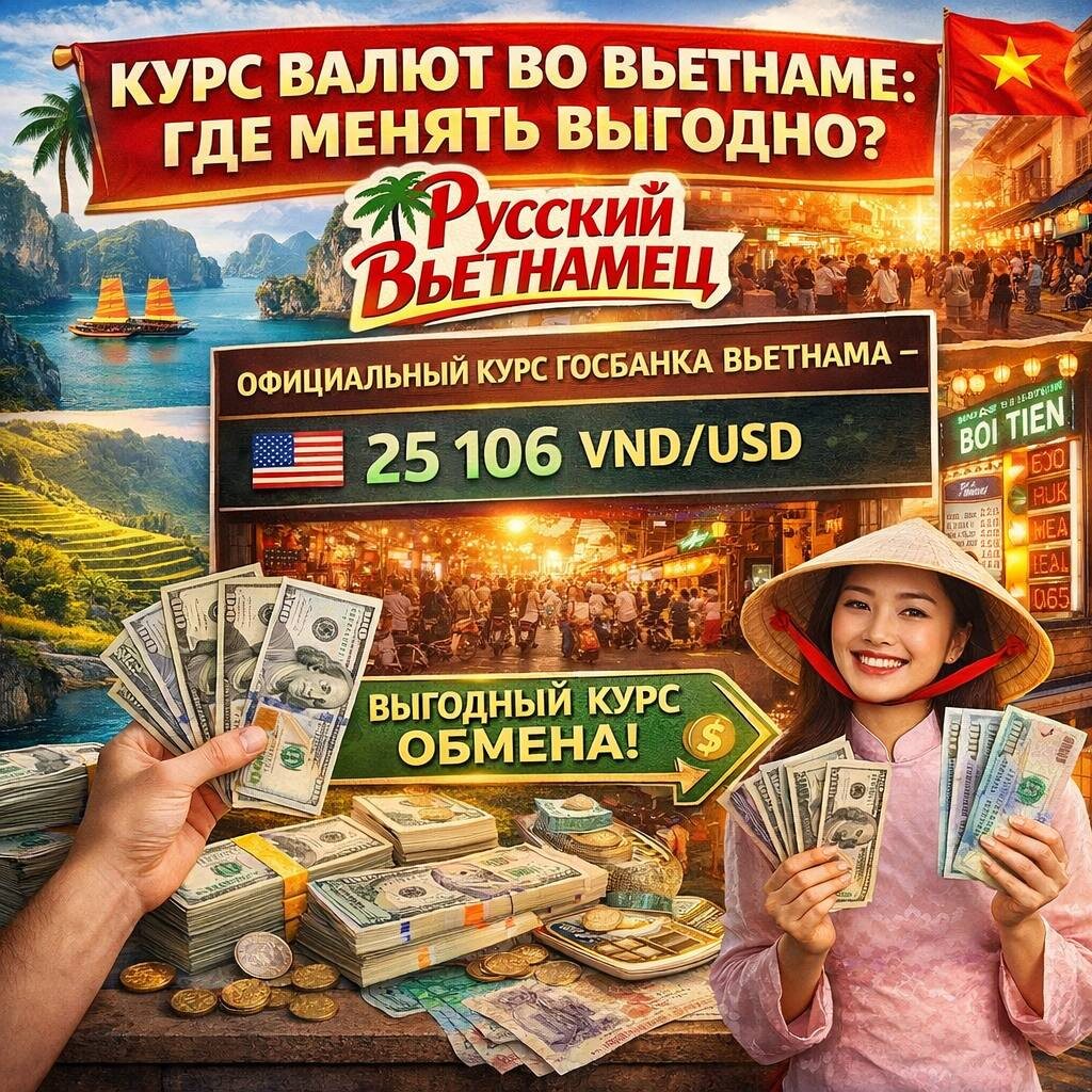 📊 КУРС НА СЕГОДНЯ (14 АПРЕЛЯ) Официальный курс Госбанка Вьетнама — 25 106 VND/USD Коммерческие банки: Vietcombank: покупка 26 141 VND, продажа 26 361 VND за $1 BIDV: покупка 26 131 VND, продажа 26 361 VND за $1 Чёрный рынок: доллар продают по ~26 910 VND Курс ЦБ РФ: 10 000 VND ≈ 30,37 рубля 💡 ГДЕ ЛУЧШЕ МЕНЯТЬ? Банки (Vietcombank, BIDV, Sacombank) — безопасно, курс чуть хуже Ювелирные магазины в туристических районах — часто самый выгодный курс. В Нячанге ищите у рынка Cho Dam Аэропорт — меняйте только минимум на первый случай, курс невыгодный ⚠️ ВАЖНО: Берите новые долларовые купюры ($100, $50) без повреждений Рубли менять крайне невыгодно, курс плохой Донги заранее в России не покупайте! ❓ Где меняете вы? Подписывайтесь на «Русского Вьетнамца» — экономьте свои деньги с нами. https://t.me/Vietnam_tut