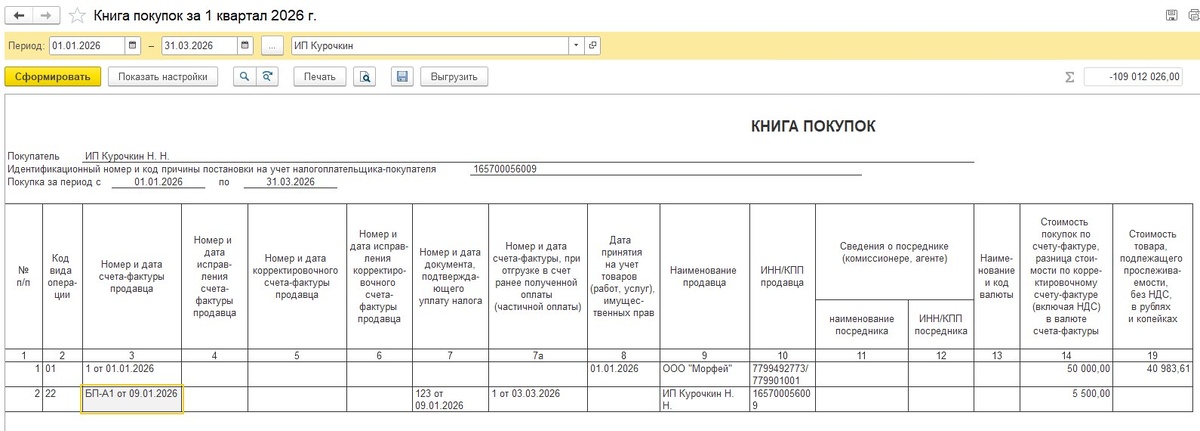 📅 В нашем посте от 11 апреля говорили про изменения в Книге продаж. Сегодня же уделим внимание Книге покупок 📝 В книге покупок с отчетности за 1 квартал 2026 года изменения следующие: 🔸графа 7а – новая графа, здесь если мы отражаем вычет по зачтенному авансу в 7а будет номер и дата с-ф по отгрузке 🔸графа 19 – сумма по прослеживаемым товарам в рублях и копейках (ранее было в рублях) 📄Как заполняется графа 7а: в конце квартала в регламентной операции Формирование записей книги покупок, где во вкладку Полученные авансы попадают документы по зачтенному авансу. Программа указывает отгрузочные счета-фактуры. Эта информация попадет в книгу покупок в графу 7а