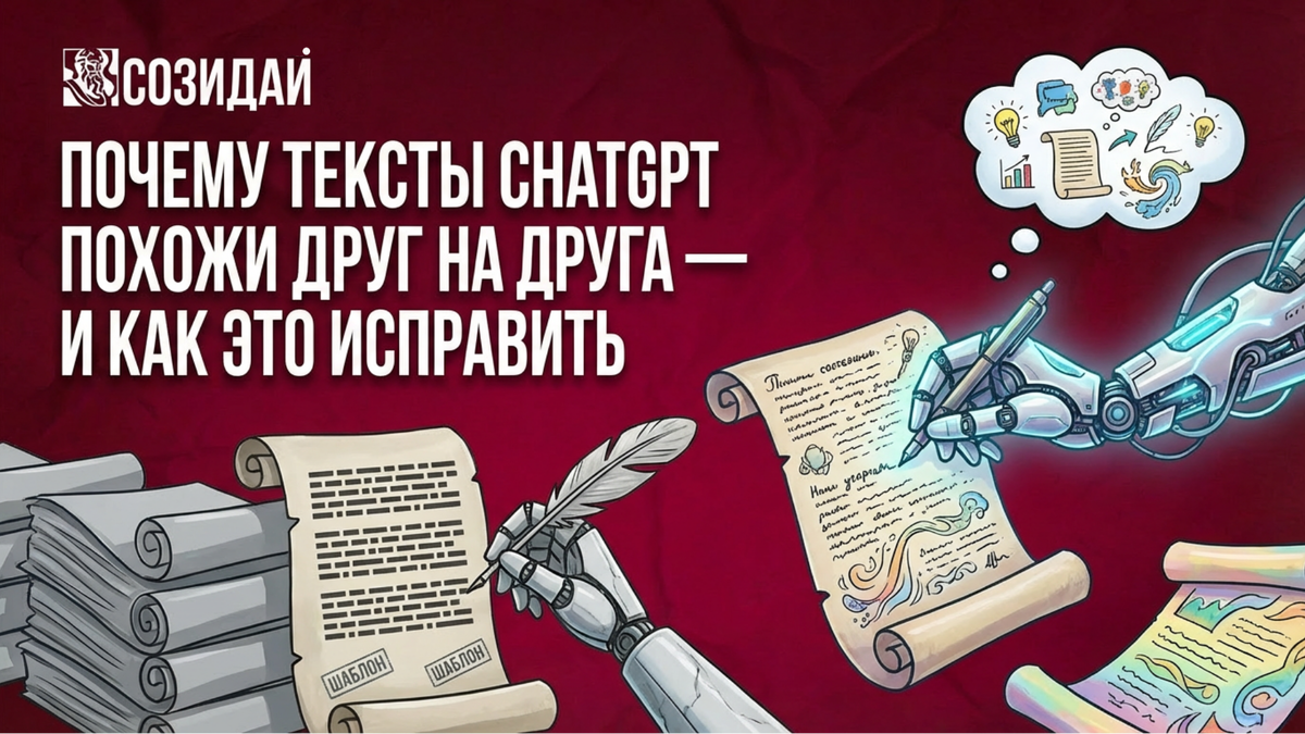 В интернете гуляют «топ-10 промптов для копирайтинга». Их копируют тысячи людей. Результат? Тысячи одинаковых текстов. Одни и те же заходы, одни и те же обороты, одна и та же структура.