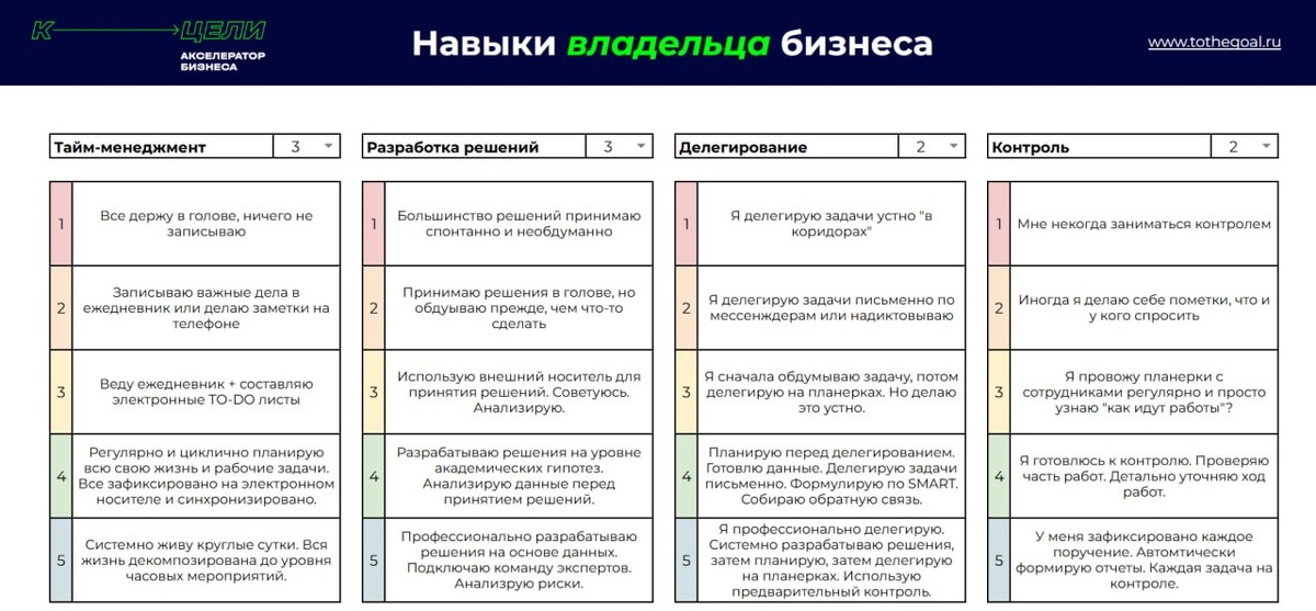 12 шкал с подробным описанием (на картинке представлено 4) А также автоматическое создание "колеса баланса" Прямой доступ к шаблону в гугл таблицах: https://clck.ru/3T5Twc
