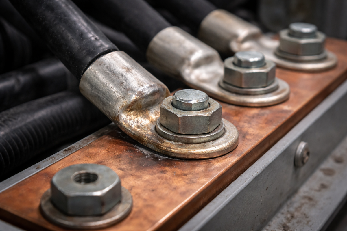 После монтажа соединение кажется надёжным: контакт затянут, сопротивление минимальное, система работает. Но под действием нагрузки и температуры механические свойства соединения начинают изменяться. Это происходит из-за: В результате контакт, который был надёжным при монтаже, со временем теряет плотность. Как только усилие контакта уменьшается, начинает расти переходное сопротивление. Это не приводит к мгновенной проблеме, но запускает процесс деградации. Это проявляется так: На этом этапе дефект уже существует, но ещё не фиксируется. Повышенное сопротивление вызывает нагрев, а нагрев усиливает деградацию. Процесс становится самоподдерживающимся. Контакт начинает:
