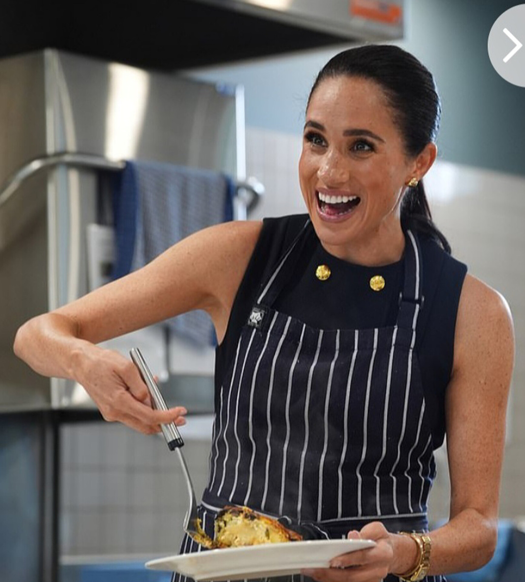Во время работы на кухне женского приюта, когда Меган надела на свое дорогое платье полосатый фартук, одна из волонтёров по имени Лия обратила внимание на состояние кожи герцогини.