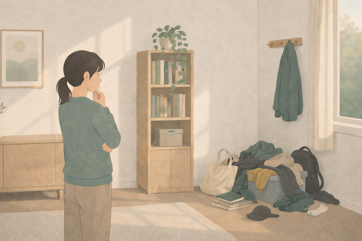 Туда кладут вещи «на минуту». Ключи, чек, пакет, куртку, зарядку. Идея простая: сейчас положу, потом разберу. Но «потом» не наступает. И таких вещей становится всё больше. В итоге место превращается в склад того, что не нашло себе постоянного дома. У вещей нет конкретного адреса