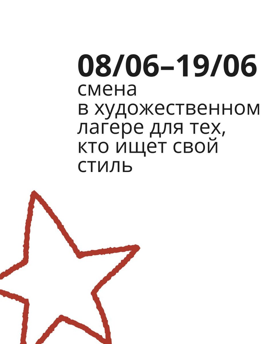 08/06–19/06 Одна смена — две недели в стране творчества! 🎨 На первой неделе будем знакомиться с направлениями в искусстве и выдающимися художниками 19-20 веков, на второй неделе будем практиковаться уже в стиле реализма. В конце смены, как самые настоящие художники, откроем выставку работ (на которую позовем всех друзей и родственников)! Каждый день ✔️ Утренний старт: настольные игры, виртуальные экскурсии по Эрмитажу, активные развлечения. ✔️ Творческие сессии: от теории к практике. ✔️ Вдохновляющие прогулки на свежем воздухе. ✔️ Вкусные перерывы с полдником. ✔️ Практические занятия в студии или на пленэре. 📅 Даты проведения: 8 июня–19 июня ⏰ Время работы: 10:00–18:00 Количество мест ограничено! 📞 Записывайтесь прямо сейчас!