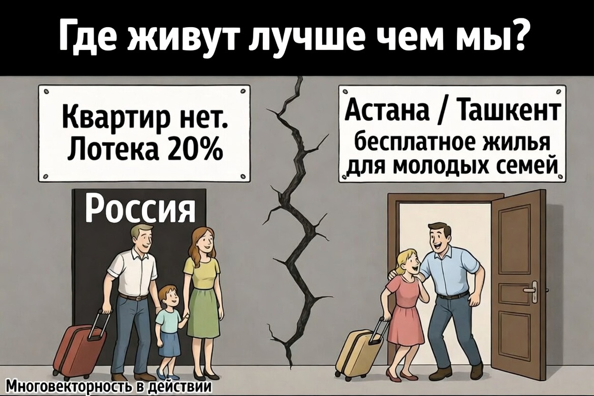 - Страны, которые уходят в «многовекторность» (Казахстан, ОАЭ, Сингапур) — это предатели или самые умные тактики? Где будет ваш внук через 20 лет: в России или в стране, где дают жилье и достойную оплату труда?