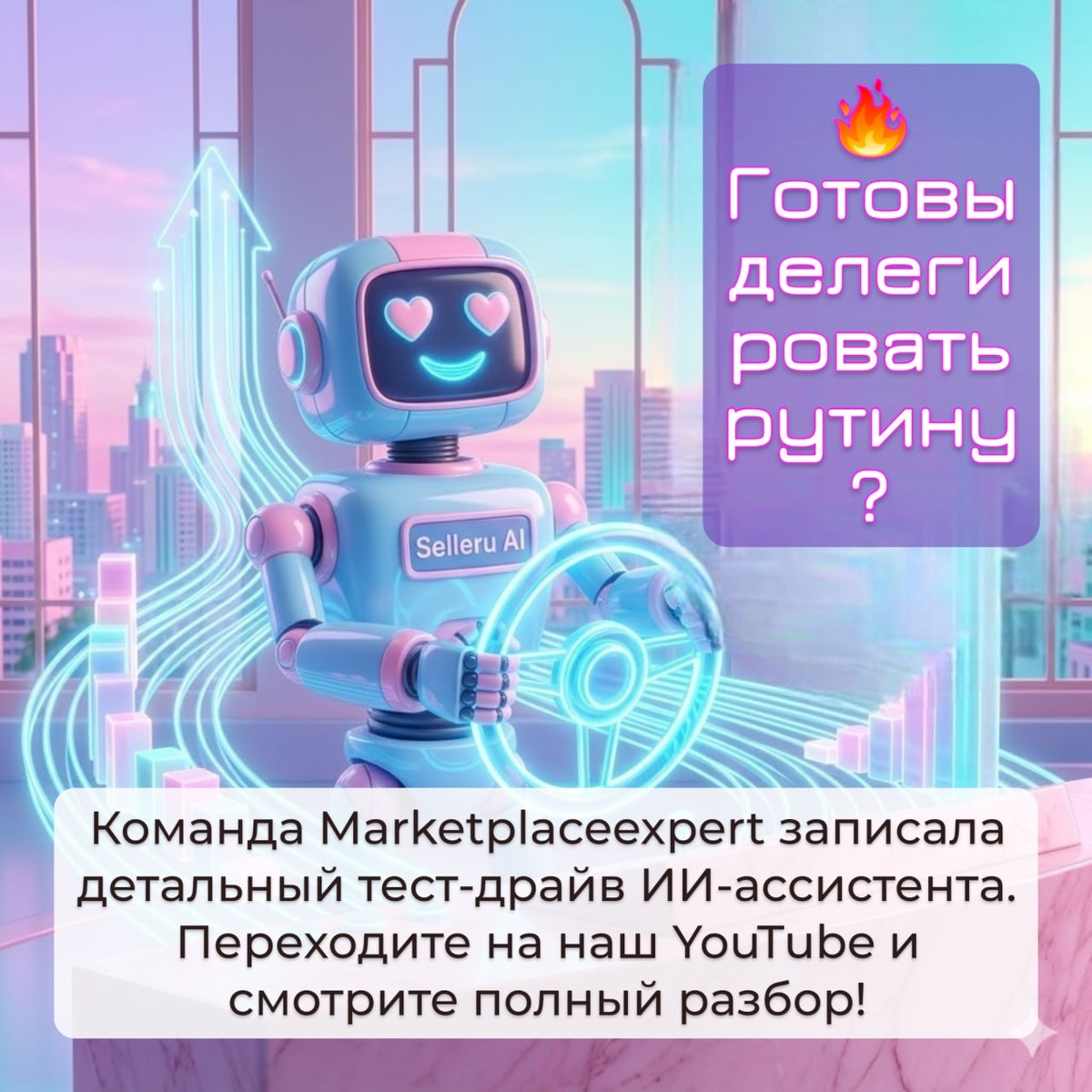 TG_POST 🔥 Готовы делегировать рутину? Команда Marketplaceexpert записала детальный тест-драйв ИИ-ассистента. Переходите на наш YouTube и смотрите полный разбор! Попробуй 5 запросов бесплатно - проверь ИИ на самом сложном вопросе!