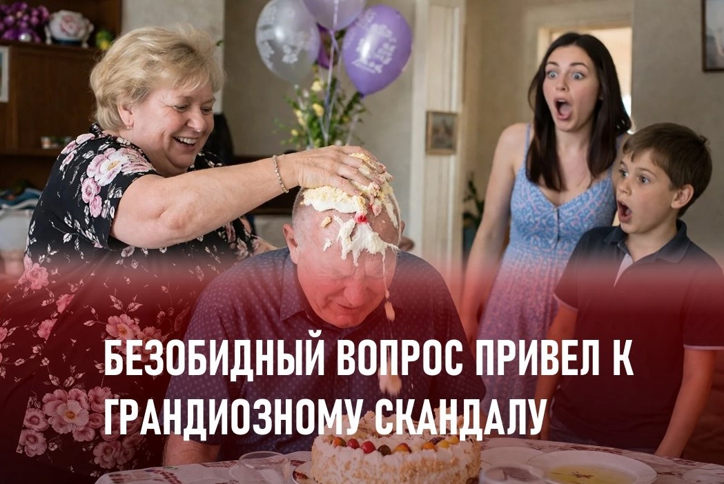 Кристина посмотрела на мужа, не веря своим ушам. А потом схватила кусок торта и с размаху размазала его по лысине Дмитрия.