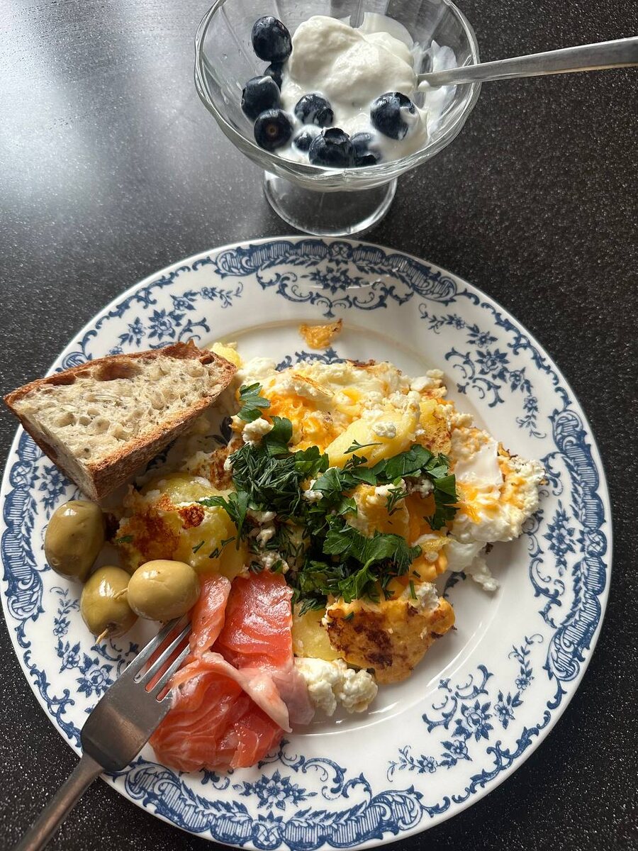 ☺️ Разогрела отварной картофель, добавила творог, залила яйцами, оливки, семга, йогурт с голубикой, вообщем всё, что я люблю 🤗 💡Сейчас изучала нейронутрициологию - и там говорят о важности разнообразного рациона, для профилактики когнитивных заболеваний. ✅6й год так живу)) но не перестаю радоваться, как же это здорово. Наблюдаю многие делают ограничения себе, мучаются - хотят одно, но едят другое 🤷♀️, но это их выбор. Если вы хотите другой путь, то он есть 🙂 запись на консультацию #слушатьсвоётело #можнобезогроничений #осозннано #заботаосебе