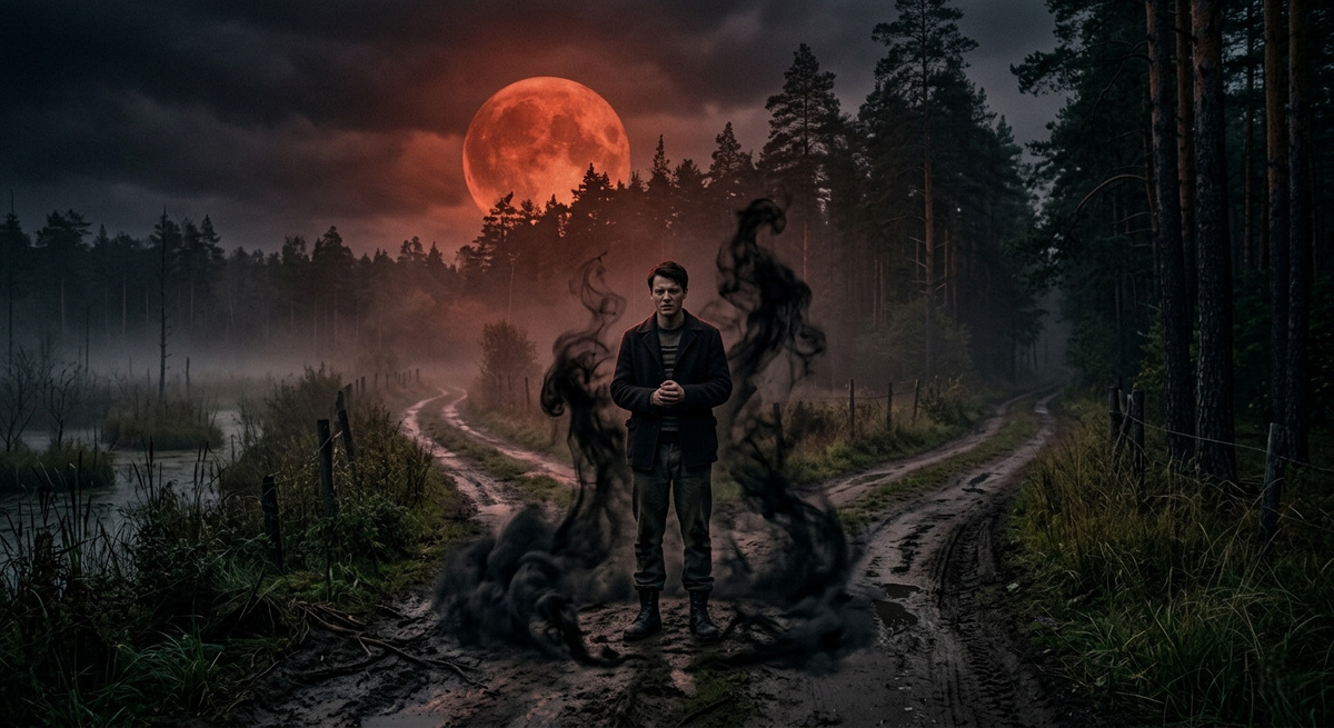В деревне Глухой Яр, затерянной между болотами и старым сосновым бором, притаилось место, которое местные обходили за версту. Там, где грунтовая дорога на погост пересекалась с трактом на райцентр, даже в полдень воздух казался густым, как кисель. Говорили, что на этом перекрестке время течёт неправильно, а тени падают не туда, куда должно.