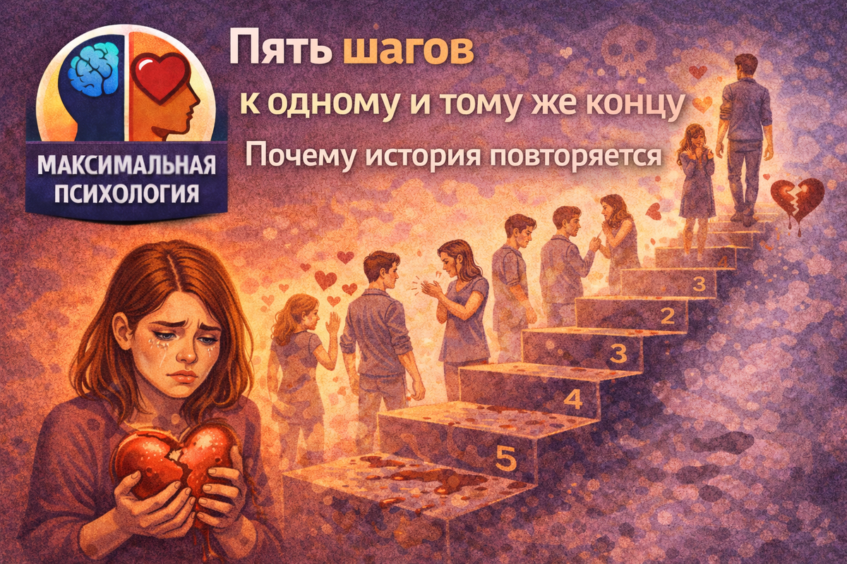 Есть такая фраза про сумасшествие: делать одно и то же снова и снова — и каждый раз ожидать другого результата. Когда я впервые услышал её, посмеялся. А потом начал работать с людьми — и смеяться перестал. Потому что увидел: это не шутка про сумасшедших. Это точное описание того, как очень многие из нас живут в отношениях. Существует одна последовательность событий, которую я вижу снова и снова. У неё всегда одинаковые шаги. И почти всегда — одинаковый финал. Шаг первый. Вспышка. Что-то происходит — взгляд, случайная фраза, момент, который невозможно объяснить логически. И внутри загорается что-то очень интенсивное. Химия, притяжение, называйте как хотите. Важно другое: чаще всего этот огонь вспыхивает именно к человеку, который чем-то недоступен. Эмоционально закрыт. Непредсказуем. Держит дистанцию. Шаг второй. Зависимость от сигналов. Всё внимание теперь направлено на одно: как он реагирует. Ответил на сообщение быстро — день удался. Был холоден при встрече — весь вечер разбор полёто
