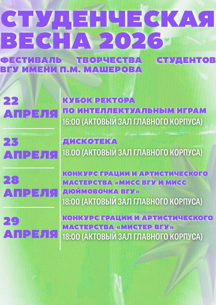 🎉С 22 по 29 апреля состоится самое долгожданное мероприятие этой весны – Фестиваль творчества студентов «Студенческая весна ВГУ-2026