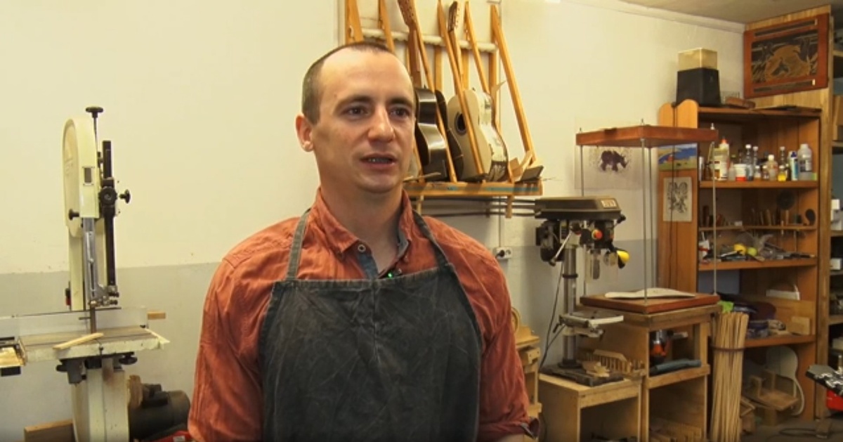 Златоуст славится мастерами, и каждый из них — особенный. Семен Ёлкин, к примеру, уже 15 лет изготавливает гитары. Инструменты нашего земляка высоко ценятся по России и за рубежом. О своем творчестве Семен рассказал журналистам медиахолдинга «Первый областной». Мама Семена была пианисткой, сестра играла на скрипке, дед — на мандолине. Мальчика сызмальства окружала красивая музыка. Но в какой-то момент Семен понял, что хочет не играть, а мастерить инструменты своими руками. Первые уроки столярного дела Семену дал Игорь Аксенов — известный в городе резчик по дереву. «Гитары и скрипки делать не научу, но как стамеску держать в руках — покажу», — пообещал Игорь Аксенов. Вместе с художником Семен сделал тарелку из капа, вазу из облепихи. Потом набивал руку на ремонте старых гитар. И, наконец, замахнулся на первый собственный инструмент — его Семен изготовил из столетнего шкафа прабабушки. Сегодня Семен работает с породами дерева, которые не растут в России: индийский палисандр, швейцарская