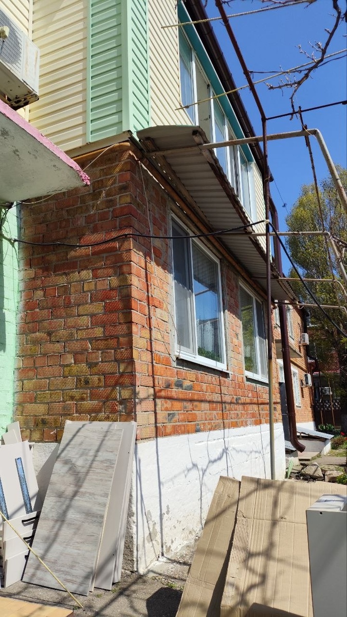 ❤️. Володя привез ещё шпаклёвки, и хотим показать вам промежуточный результат работы плиточников. Уже начали штукатурить стены. И по фото видно какой нанесён слой. Теперь понятно, почему предыдущий плиточник наносил такой большой слой плиточного клея. Стены завалены, поэтому такой результат. Три дня будут сохнуть, потом продолжат работу ☺️