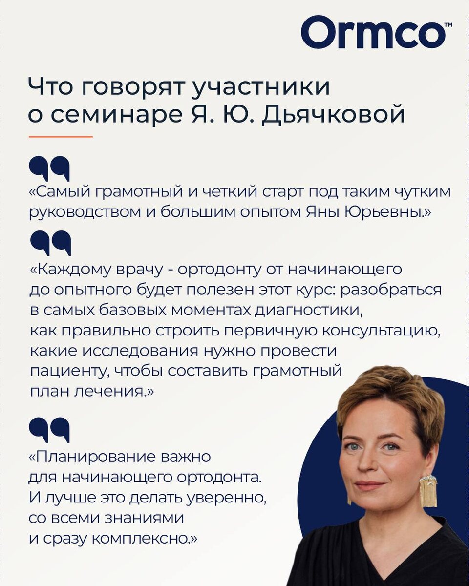 Если вы хотите так же структурировать свои знания, получить новые впечатления и обрести уверенность в работе — будем рады видеть вас на курсе «Лечение и профилактика дисфункций ВНЧС. Модуль 2». 🗓 15–16 мая 2026 г. 📍г. Санкт-Петербург ✨Стоимость: 30.000₽ Скидка: для ординаторов - 30%, для членов ПОО - 15%, для участников ШО - 50%, врачам 1-2 года практики - 30%, преподавателям кафедр - 50%, Скидка Звёзды Ormco - 50% ⚡️Чтобы зарегистрироваться, переходите на сайт orthodontia.ru по ссылке.