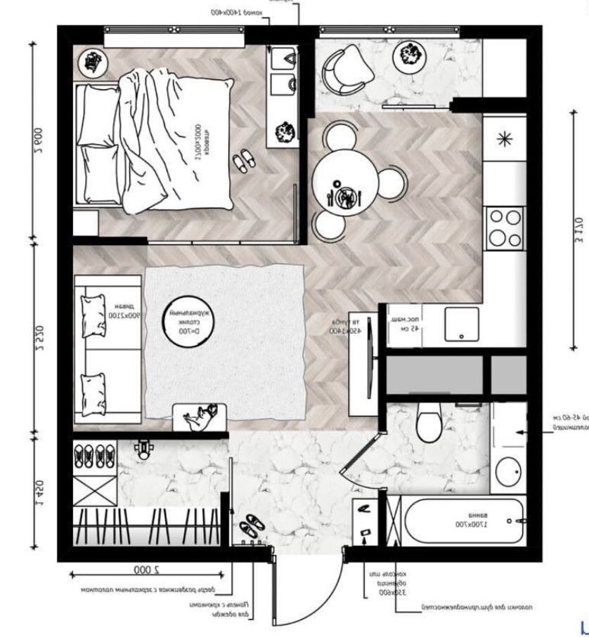 - Какие активности будут происходить в каждой зоне: работа, отдых, приём пищи, сон, творчество, спорт?