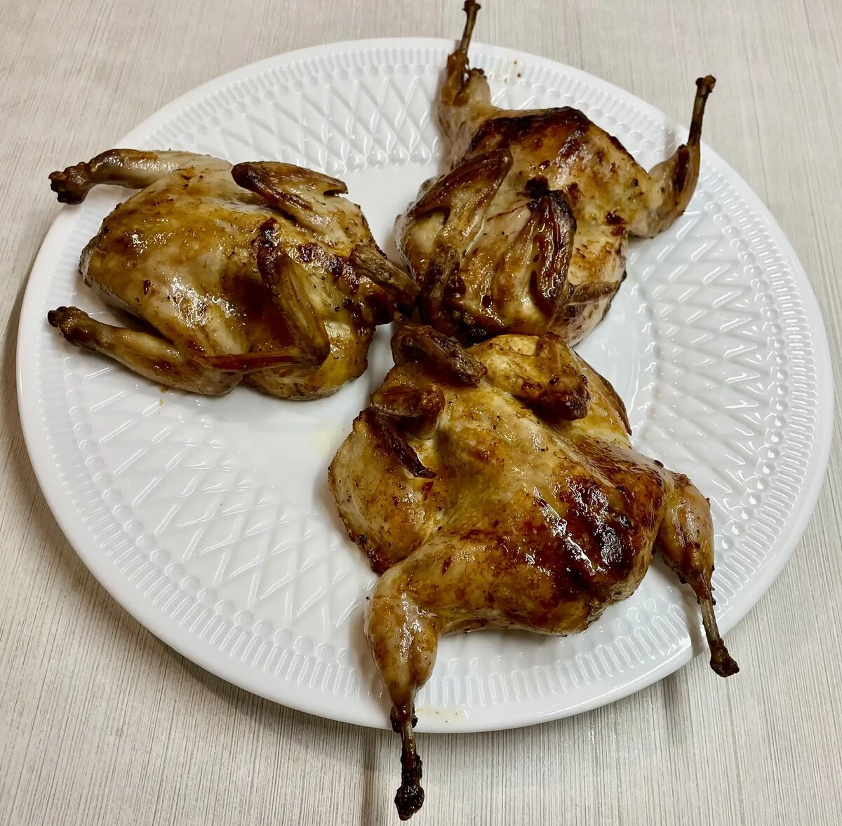 Сегодня, мои поварята, я расскажу вам о маленьких и божественно вкусных птичках — перепёлочках. 🐦✨ К сожалению, их очень редко можно встретить на прилавках. Да и цена у них — ОГО-ГО просто! Но, лично меня это не останавливает!... Я их настолько люблю, что мимо просто не могу пройти. Иначе ночь спать не буду — буду мечтать о них. Честно-честно 😴🍗 Вот и на этот раз: они лежали на прилавке, смотрели на меня... и я не смогла устоять. Купила 3 штучки! 😇 Много специй я не кладу — чтобы не испортить их нежный вкус. Зачем пытаться сделать лучше то, что и так прекрасно?🎀 Сливочное масло в таком количестве нам необходимо для того, чтобы перепёлочки получились сочными. В них практически нет собственного жирка — они такие худышки, как модели перед показом 😅 А ещё масло придаст приятную сливочную нотку и сделает мясо ещё нежнее. Так что не жалейте!) Промываем перепёлочек хорошенько под проточной водой (не устану напоминать об этом — безопасность прежде всего! Разрезаем аккуратно вдоль грудки