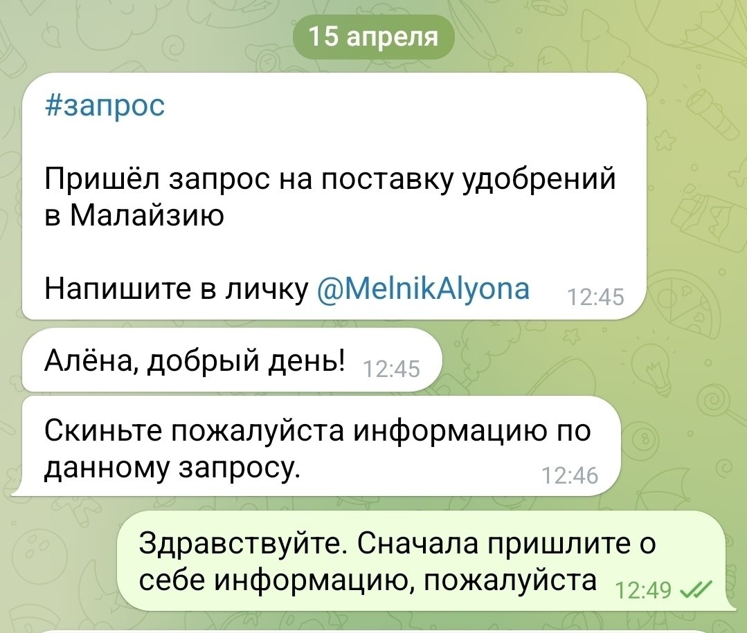 🙈 Что тут не так, разберём в комментариях? Напоминаю, что даже на входящий запрос следует составлять грамотное, профессиональное сообщение. Часто вижу ошибку, что как будто на входящие (тем более по рекомендации) человек отвечает "на отвали". Ну он же сам пришёл... Сам, не сам, а слить можно клиента даже, если это входящий запрос по рекомендации, если не приложить усилия, чтобы составить хорошее сообщение. Не хватает навыков? Обратите внимание на запись тренинга "Первое сообщение в переписке". Там я всё это подробно разбираю. #разбор, #первое_сообщение
