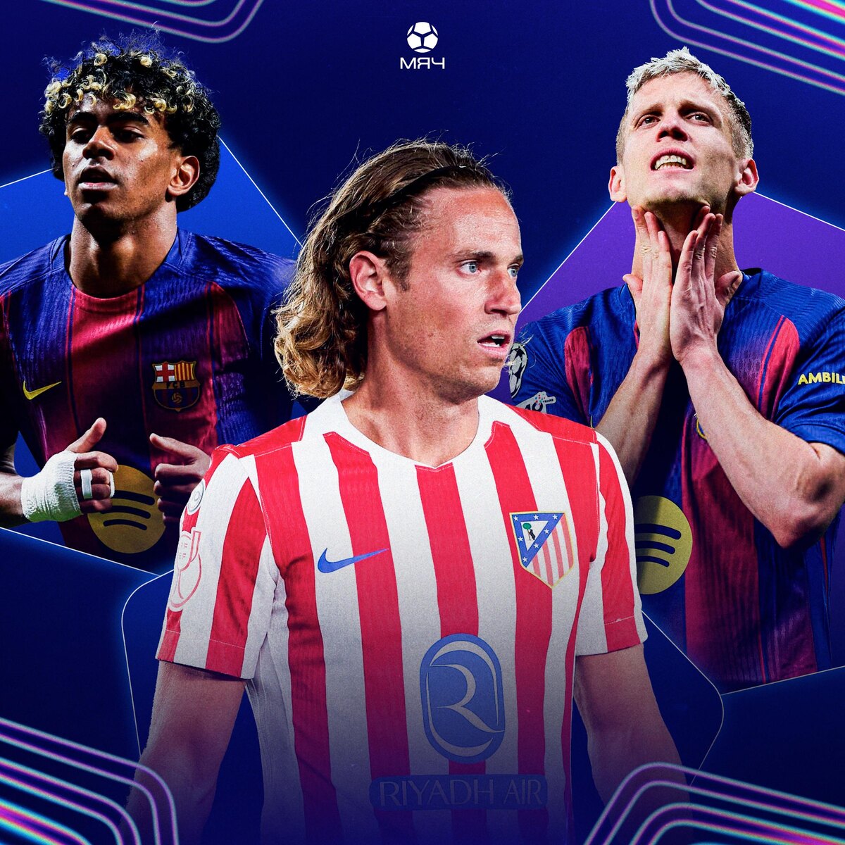 Как и обещал Ламин Ямаль, «Барселона» сразу врубила режим уничтожающего прессинга, в рамках которого сам Ламин часто атаковал ЦЗ. Именно так пришел первый гол – Ямаль обокрал Клемана Лангле. И если на первых минутах хозяева еще пытались владеть мячом, то по итогам матча каталонцы забрали 70+% (несмотря на удаление). Еще один прием Ханси Флика – Дани Ольмо на позиции десятки. И он сработал: испанец регулярно становился главным источником угрозы, а медленному Коке приходилось разрываться между ним и Гави. В итоге во втором голе он не добежал, и Дани отдал ассист на Феррана, а отмененный гол стал возможен, потому что Коке побежал на Ольмо, открыв дорогу для рывка Гави в штрафную. Оборонялась «Барселона» с традиционно высокой линией, из-за которой и пришел решающий гол, а у «Атлетико» стоит выделить его соавтора, Маркоса Льоренте. Он не только сделал ключевой рывок, но и мощно отпахал в обороне, заставив поблекнуть Педри и круто страховав против того же Канселу. @myach | МЯЧ в Max
