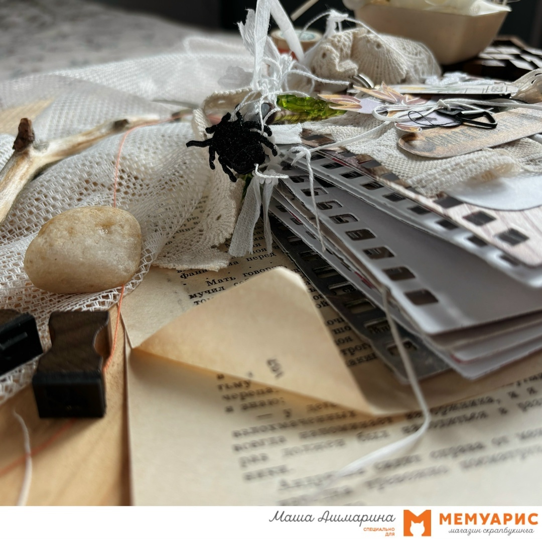 Привет, друзья! Здесь Маша и мой новый крошка-альбомчик. 30 восхитительных минут на берегу бурной реки, у высоченных гор под бесконечным небом, коровы-подружки и наши танцы в папахах на фоне старинной башни. Они должны были быть сохранены. 30 минут в Кабардино-Балкарии по пути на древний Эльбрус. Основа альбомчика - прекрасная бумага «Философия природы» от GoldenScrap с такими тихими, спокойными принтами, идеальна для этой истории. Где-то захотелось сохранить воздух и свет, поэтому, кроме белых листов, штампов и вырезанных элементов добавлять ничего и не стала. С удовольствием попробовала в деле новые ножички от Мимикат, в новом релизе много того, что идеально подойдет путешественникам, например, «Садовые таблички». Помню, как мои мужчины искали дубинки на берегу и позировали грозно, вспомнилась фраза из известного фильма, выложила ее на страничке альбома вырубкой-алфавитом, в том числе и от Agiart. Узорные подложки на страничках приготовила ножом Мимикат из набора «Конь мой конь». И с