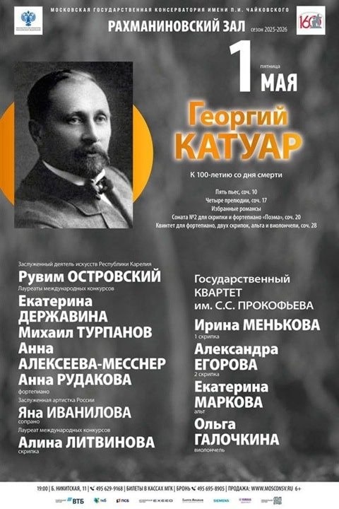 ?» 1 мая 2026 в Рахманиновском зале Московской консерватории состоится концерт к 100-летию смерти Георгия Львовича Катуара (1861-1926) – композитора, благословлённого Чайковским и ставшего одним из самых изысканных, хоть и незаслуженно забытых представителей эпохи русского музыкального модерна. О Георгии Катуаре и его музыке специально для ClassicalМusicNews.Ru – Елена Черемных. https://www.classicalmusicnews.ru/anons/georgy-katuar-concert-2026/?utm_source=cmn_own&utm_medium=telegram 🎼 ClassicalMusicNews.Ru | Telegram | ВК | МАКС